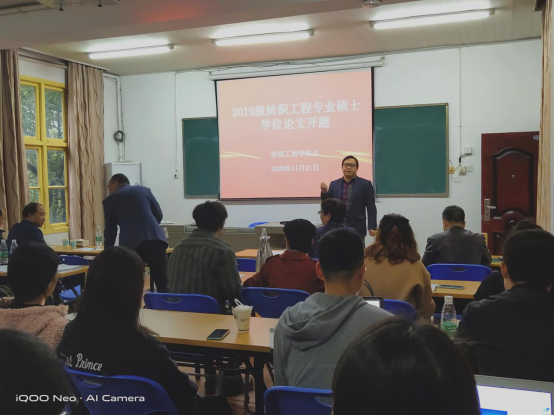2020年11月21日,天气剧变冷,但电教303教室却如火如荼。根据388vip太阳集团官网研究生工作处的相关工作部署及要求,纺织工程学位点此时此地正组织2019级纺织工程专业硕士研究生学位论文开题。