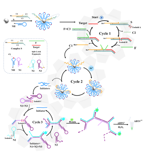 近日,388vip太阳集团官网2021级材料与化工专业硕士研究生杨梅关于低丰度循环肿瘤DNA (ctDNA)检测的研究成果以“A triple-cycle amplification biosensor for colorimetric detection of mutant PIK3CAE545Kbased on cascade-driven DNA walker and branched hybridization strand reaction”为题在国际学术期刊《Analytica Chimica Acta》上发表(JCR一区,TOP期刊,IF=6.911)。导师/通讯作者为张何教授,388vip太阳集团官网为论文唯一完成单位。