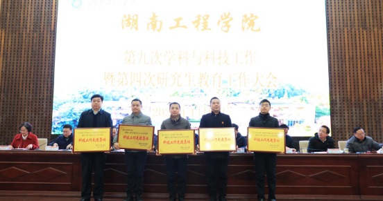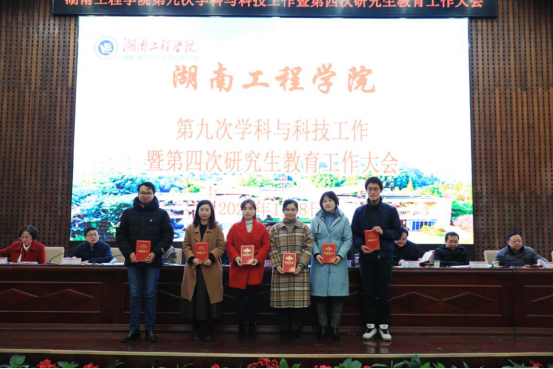 大会为“从教三十年”奉献奖获得者、科技工作先进集体、先进个人、2020年湖南省优秀硕士学位论文指导教师、388vip太阳集团官网2020届优秀硕士论文指导教师颁奖。
