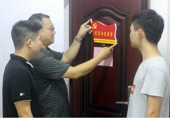 “希望各位党员亮明身份,引领正气,发挥好模范带头作用。”9月10日上午,研究生“党员示范寝室”挂牌仪式在北校区学海9栋研究生宿舍举行。研究生处党支部书记、处长李小华、副处长覃波,研究生党支部纪检委员唐湘蓉及辅导员为研究生党员示范寝室挂牌。