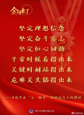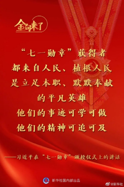 首先,我代表党中央,向“七一勋章”获得者,表示热烈的祝贺!致以崇高的敬意!