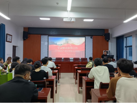 组织委员黄印杰率先领学《中国共产党纪律处分条例》总则,着重解读新修订内容,引导党员同志全面理解各部分的核心要义。随后,彭游源同志重点讲解了第三章纪律处分运用原则和第四章对违法犯罪党员的纪律处分,希望大家在党纪学习教育中率先垂范,统一思想、统一意志、统一行动,将党纪学习教育成果转化为推动研究生教育工作的强大动力,助力学校高质量内涵式发展